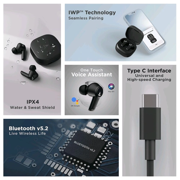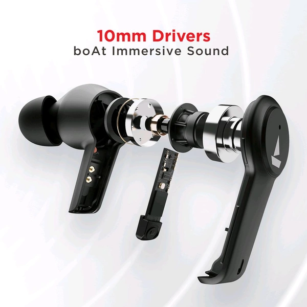 Choose music, not noise with Airdopes 411 ANC by suppressing noise up to 25dB with Active Noise Cancellation. Experience a smooth calling experience like no other with ENx™ Technology. Indulge in the immersive sound from boAt powered by its 10mm Drivers. Groove for as long as you want with a massive 17.5 Hours of total playback time. Never run out of juice as you enjoy your playlist with its ASAP™ Charge that gets you 60 Minutes of performance with just 10 Minutes of charge. Just plug in and listen to the #SoundThatMatters!