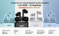 Discover KDM – A1 Hoppods, advanced wireless earbuds with V5.4 technology for a fast, stable connection. Enjoy up to 5 hours of music playback, 6 hours of talk time per earbud, and up to 560 hours of standby time. Recharge in just 120 minutes with quick charge capabilities. Features include easy touch controls and a built-in voice assistant. Elevate your audio experience today.