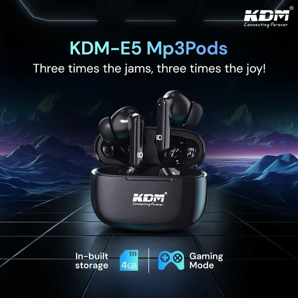 KDM – E5 MP3PODS TWS, Truly Wireless in Ear Earbuds, with 40 Hrs Playtime, ENC, Quad Mic, Gaming Mode, Type-C Fast Charging, Buds, Navy Blue