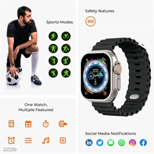 Big 1.99" Display : View bigger on the screen covering every edge possible and providing a crystal-clear resolution of 520*580 pixels on the T- 800 Ultra Smartwatch.